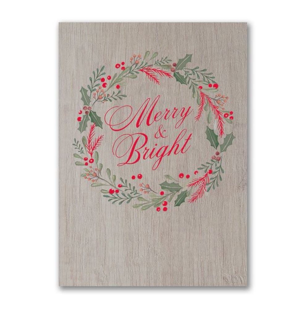 sku: UBS99685Recipients will surely be impressed by this country chic folding holiday card featuring a woodgrain background and holiday message in raised printing. Dimensions: 5" x 7" Folded. Price includes printed card with blank envelope. Paper: White Smooth 94 lb. Features your logo inside the card.