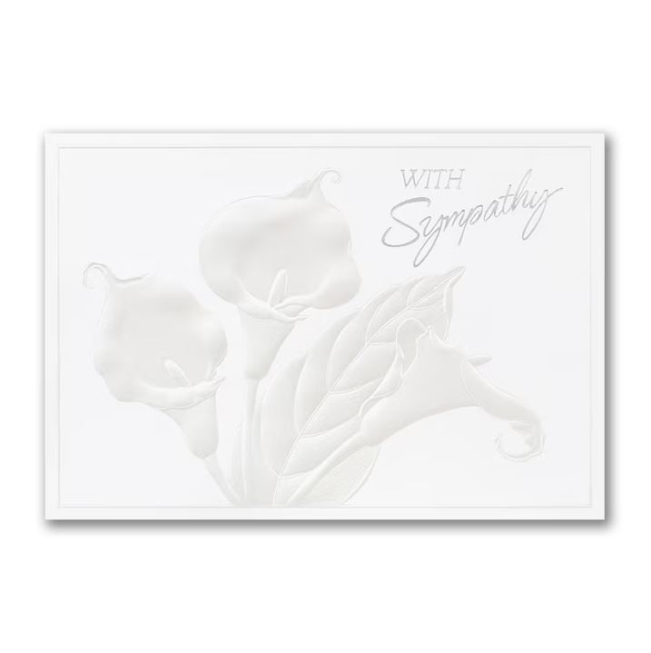 sku: UBS99692Stamped and embossed pearl and silver foil generate true beauty and elegance on this best-selling sympathy card. Dimensions: 7 7/8" x 5 5/8" Folded. Price includes printed card with blank envelope. Paper: White Smooth 100 lb. Features your logo inside the card.