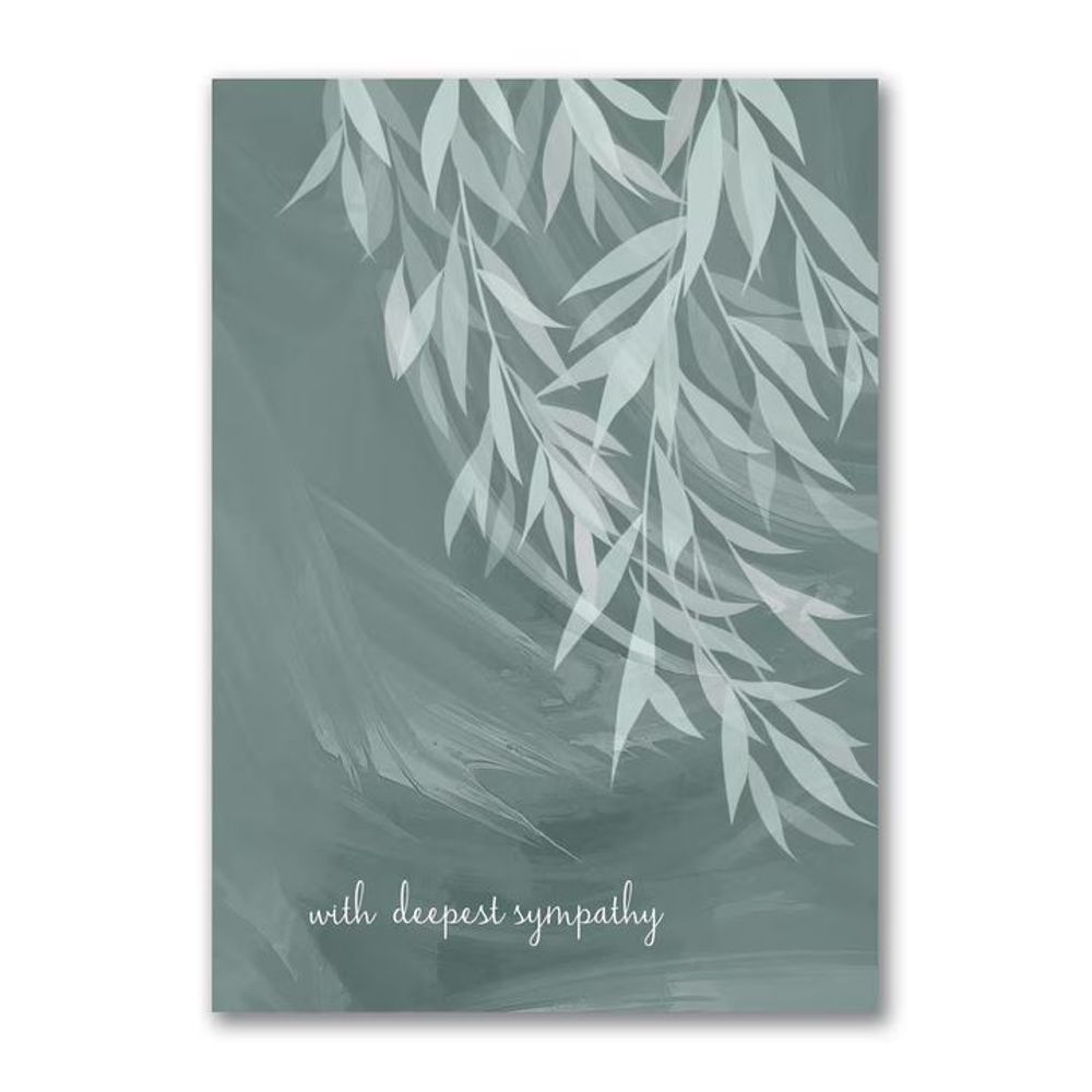 sku: UBS99693The subtle hues of the greenery design on this sympathy card offer hope along with your sincere condolences. Dimensions: 5 5/8" x 7 7/8" Folded. Price includes printed card with blank envelope. Paper: White Smooth 110 lb. Features your logo inside the card.