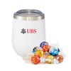 sku: UBS88363WHKDurable, double-wall 18/18 stainless steel vacuum construction with copper insulation, which allows your beverage to stay cold for 24 hours and hot for at least 6 hours. The construction also prevents condensation on the outside of the tumbler. Easy sipping, push-on lid. Wide opening for comfortable filling and pouring. Durable powder spray color. 12oz. Features your logo on the tumbler. Filled with Lindt chocolates.