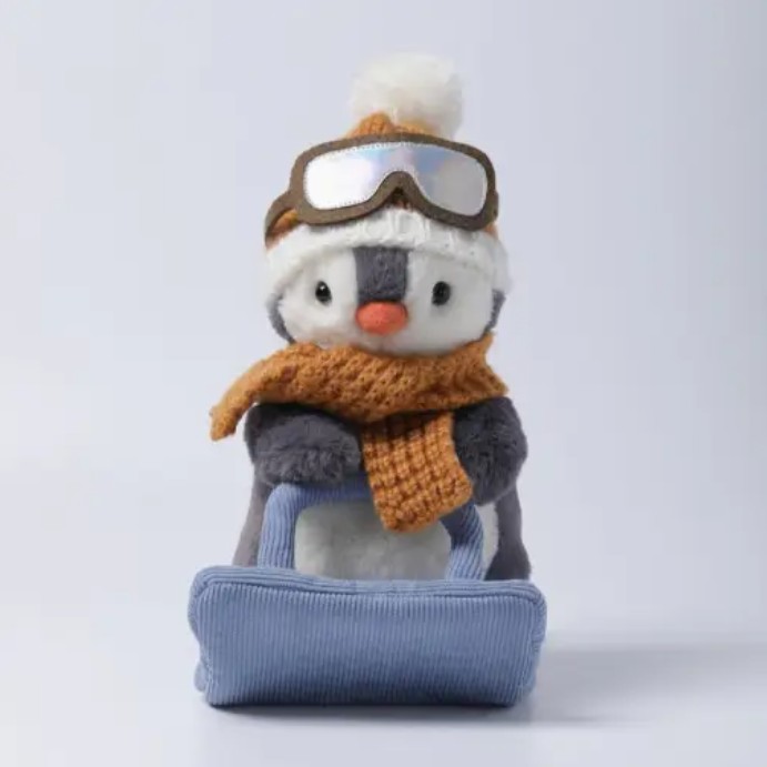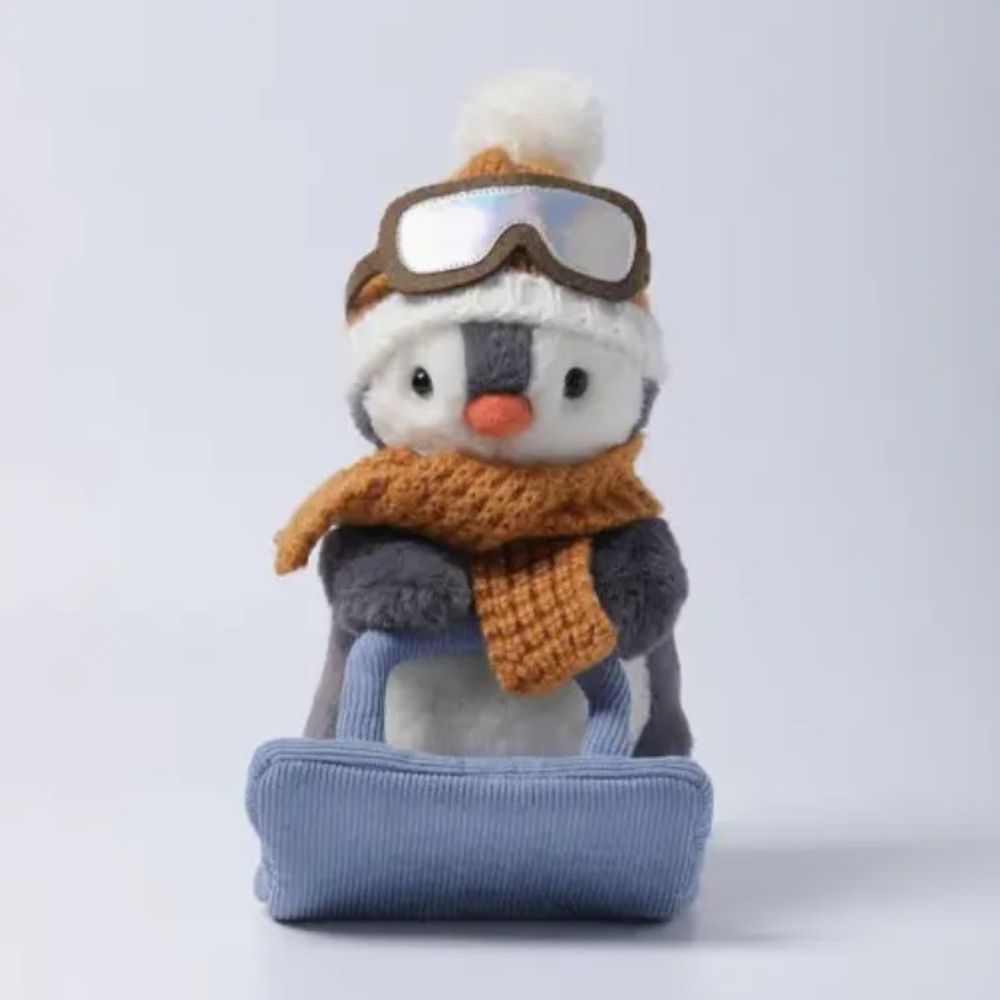 Meet the Sledding Glacier Penguin, a heartwarming plush companion designed to bring comfort and joy to everyday moments. Crafted with ultra-soft materials and a gently weighted design, this plushie offers a soothing, huggable feel that makes it perfect for bedtime, playtime, travel, or relaxing at home. This plushie measures 10in, and is 100% polyester.