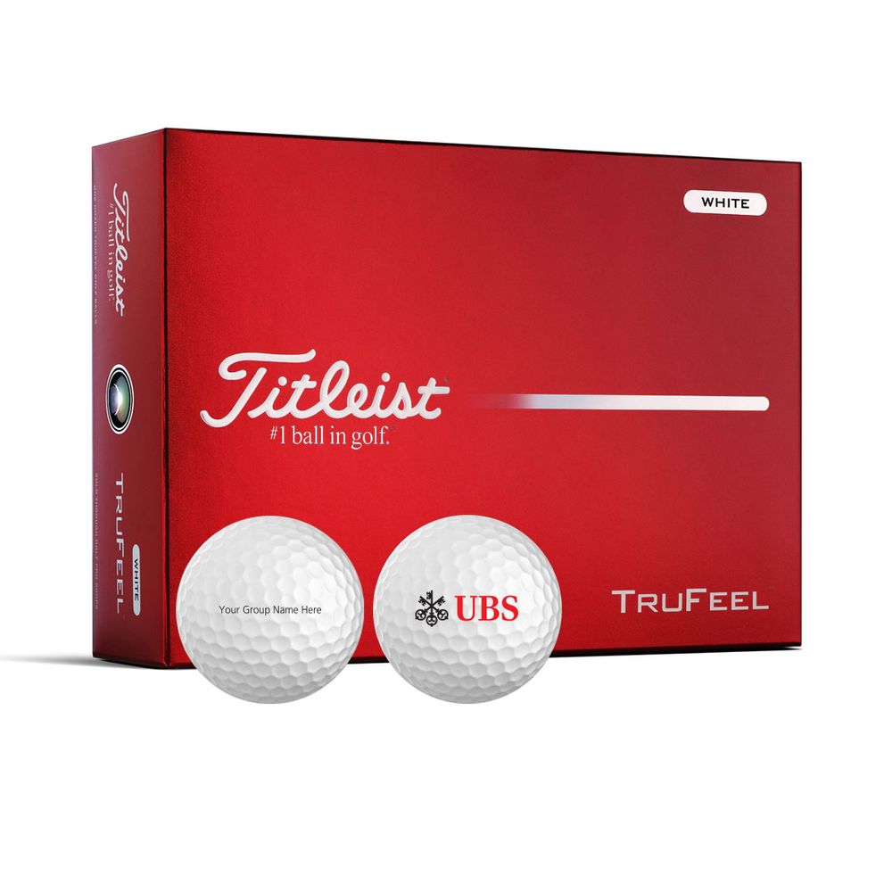 sku: UBS232VAExperience the feel of distance and control with the Titleist TruFeel Golf Balls. Redesigned with a new core and a new cover, the TruFeel delivers longer distances on all shots. It’s the softest feeling Titleist and provides superior distance through low spin on long shots and increases short game spin for stopping power on the green. Three balls per sleeve. Four sleeves per box. One dozen balls per box. Your logo is printed on each ball, as well as personal customization. Please provide your group name or personal text in the product personalization box.