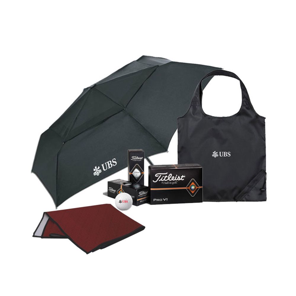 sku: UBS885381KKit includes: Titleist Pro V1 – Half Dozen (UBS230HD), Windproof Vented Auto Open Umbrella (UBS96946), Microfiber Golf Towel (UBS2721), Foldaway Shopper Tote (UBS2006).